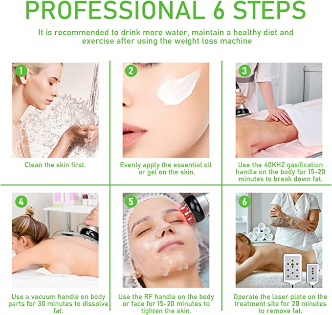 【Newest System】- 6IN1 Body sculptin machine adopts latest system,Low energy, safe and effective.Adjustable intensity to meet your demand. Better use with the gel or serum.