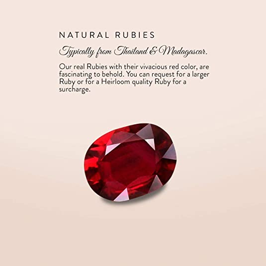 • 100% Genuine, Conflict Free Diamonds and Gemstones. Made with 3 gemstones in a Prong Setting. Ruby is July's Birthstone.