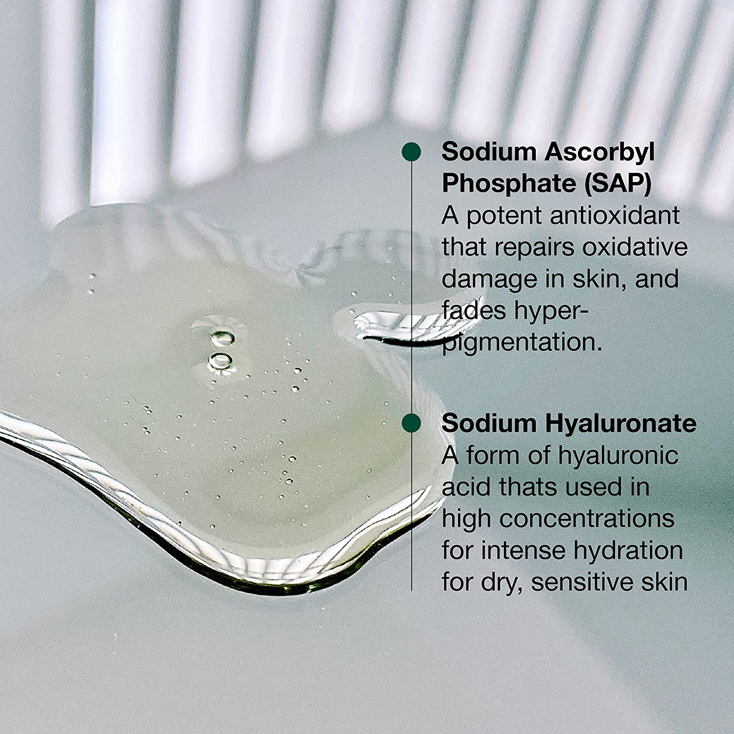 • Sensitive skin safe: Magnesium Ascorbyl Phosphate is a component that helps to even out skin tone. This component is also suitable for people with skin sensitivity and/or who are somewhat intolerant of acidic forms of vitamin C.