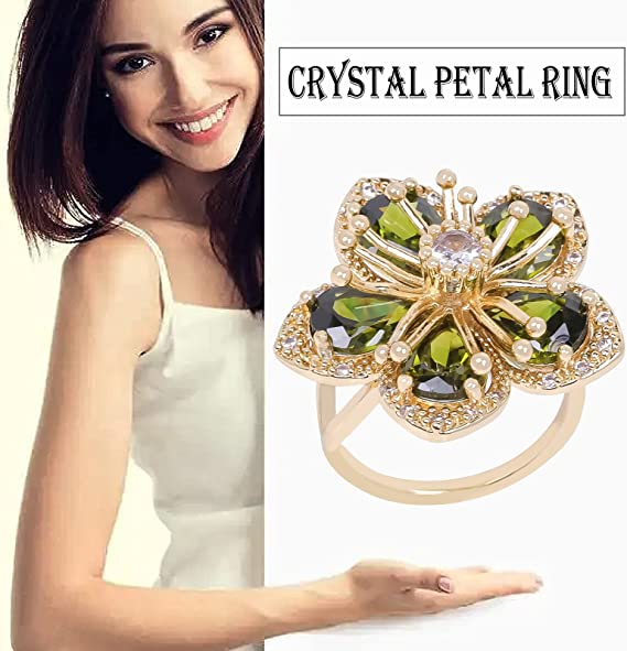 ♥Design:The crystal petal ring is set with beautifully cut crystals and the zirconia crystals are large and sparkly, making it easy to match with your outfit.