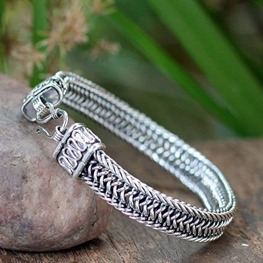 NOVICA .925 Sterling Silver Men's Woven Chain Bracelet, 8.5", Kingdom'