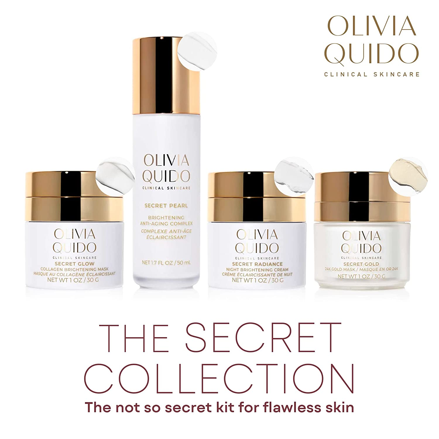 OLIVIA QUIDO Clinical Skin Care Secret Collection | Secret Gold Bundle with Secret Glow, Secret Pearl & Secret Radiance | Anti-Aging and Tone Balancing Beauty Regimen Fights Dark Spots & Pigmentation